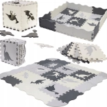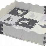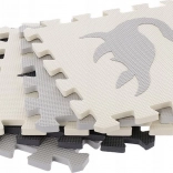 Vytvorte svojmu dieťaťu bezpečný kútik na hranie s kvalitnou penovou podložkou s motívom dinosaurov v elegantných sivých odtieňoch. Jednotlivé diely sa jednoducho skladajú ako puzzle, navyše s vyberateľnými tvarmi, ktoré podporujú jemnú motoriku a predstavivosť.