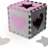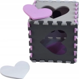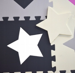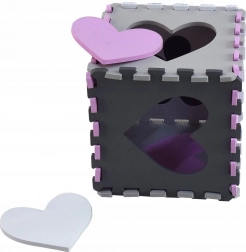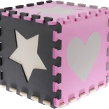 Penové puzzle s jemne ryhovaným povrchom je ideálne ako hrací koberec do detskej izby, herne aj obývačky. Jednotlivé diely môžete ľubovoľne skladať a prispôsobiť tak veľkosť priestoru. Vyberateľné tvary srdiečok a hviezdičiek podporujú motoriku a kreatívne hranie.