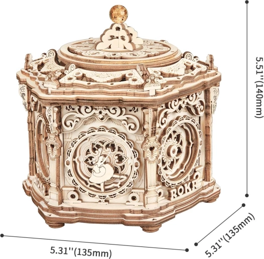 Detailná skladačka hracej skrinky s renesančným dizajnom a melódiou z Labutieho jazera. Ideálna pre milovníkov umenia a hudby, vhodná ako dekorácia. Obsahuje 315 dielikov, stredná obtiažnosť.
