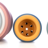 Diely možno stavať do veže alebo vkladať do seba, vďaka čomu sa deti učia tvary, farby a poradie veľkostí zábavnou formou.