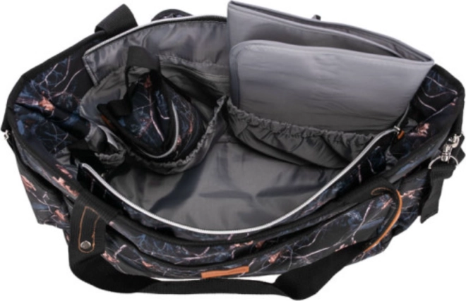 Interiér aj exteriér tašky ponúka bohatú výbavu vreciek pre prehľadnú organizáciu a bezpečné uloženie fľaštičky, plienok, obrúskov aj drobností. Súčasťou je termo puzdro na dojčenskú fľašu a mäkká prebaľovacia podložka, takže svoje dieťa prebalíte pohodlne kdekoľvek.