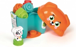 Praktický box udržiava všetky dieliky pokope a veko slúži ako stabilná základňa na stavanie. Veselý motív psíka deti motivuje k objavovaniu a hre.