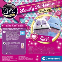 Súprava CRAZY CHIC od CLEMENTONI prináša hravé líčenie v dizajne hrošej baletky s roztomilou látkovou sukničkou a zlatou korunkou. Vo vnútri nájdete starostlivo zladené jemné odtiene, ktoré podporia prirodzený a štýlový vzhľad. Deti môžu skúšať líčenie samy, podľa kamarátok či maminky, a tiež sa inšpirovať online návodmi.