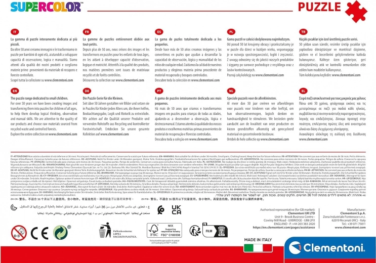 Detské puzzle SuperColor Collection – edícia navrhnutá špeciálne pre deti, pomáha im rozvíjať manuálnu zručnosť a schopnosť pozorovania. Kvalita materiálov a exkluzívna technika tlače zaručujú trvalo krásne, živé a žiarivé farby.