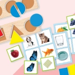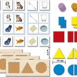 - Učenie farieb a tvarov – vizuálne rozlišovanie, pomenúvanie a logické priraďovanie.