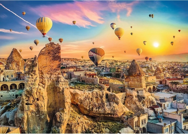 Užite si relax pri nádhernom motíve Kapadócie s farebnými balónmi a teplými tónmi romantického západu slnka. Séria UFT od TREFL umožňuje spájať viac motívov dokopy a vytvoriť tak jedinečnú, rozšíriteľnú koláž presne podľa vašej fantázie.