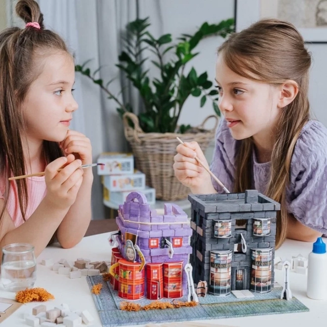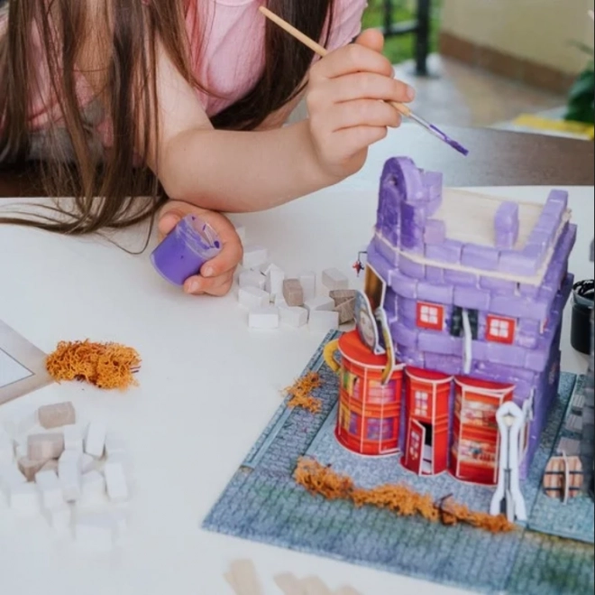 Stavajte tehlu po tehle, režte a lepte drevené doštičky a vytvorte pevnú a realistickú budovu legendárneho obchodu z Rokfortskej ulice.