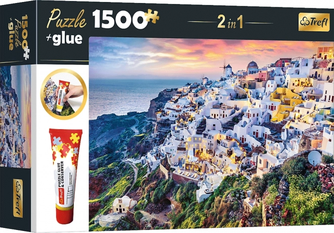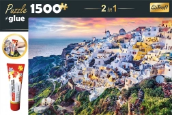 Trefl Sada 2v1 Puzzle Nádherný Ostrov Santorini Grécko 1500 Dielov s Lepidlom