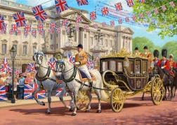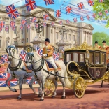 Objavte sadu 4 samostatných puzzle, ktoré oslavujú Britániu: Derby v Epsom Downs, koncert pri paláci, jazdu kráľovského kočiara pri Trooping the Colour a živú pouličnú slávnosť. Každé puzzle má 500 dielikov a po zložení meria cca 49 × 34 cm; v balení nájdete aj predlohy motívov.