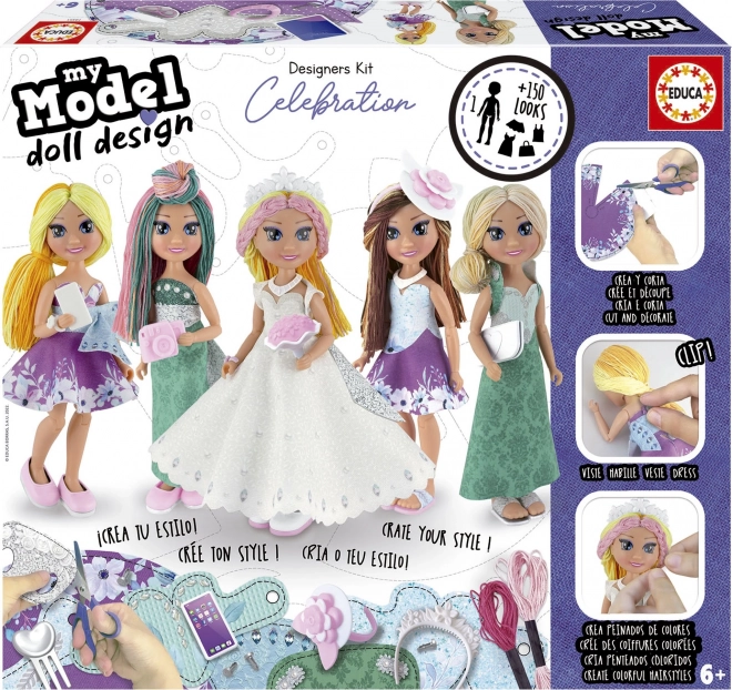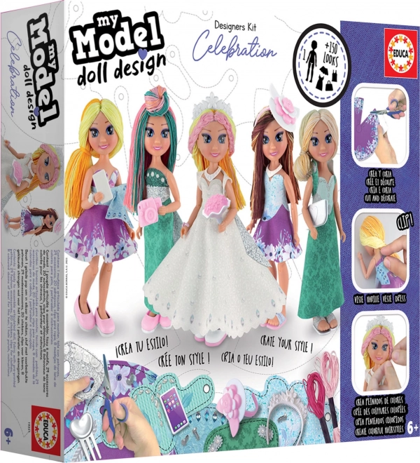 EDUCA My Model Doll Design je rad kreatívnych súprav pre deti navrhnutých špeciálne na podporu tvorivosti a detskej fantázie. Zábavnou formou vedie deti procesom predstavivosti a podporuje rozvoj schopností detí logicky myslieť a dávať veci do súvislostí. Vďaka súprave, ktorá obsahuje všetko potrebné na vytvorenie oblečenia na večierky, stretnutia a do divadla, sa z vás stanú skvelí módni návrhári a stylisti.