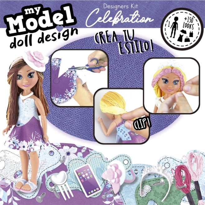Balenie obsahuje: zostaviteľnú bábiku, látku s predtlačenými vzormi 61x32 cm, módne doplnky, bavlnky do vlasov, dierovač na oblečenie, doplnky, obrázkový návod. Kreatívne sady My Model Doll Design sú rozdelené podľa 6 rôznych tém: Módne štúdio, Oslava, Popová hviezda, Glam Chic, Svet fantázie a Ležérny štýl.