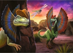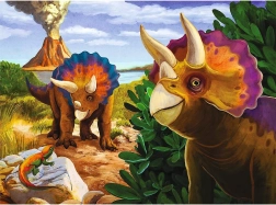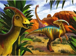 Puzzle obsahujú pestrofarebné ilustrácie dinosaurov v prehistorickom prostredí, ktoré zaujmú pozornosť detí a rozširujú ich predstavivosť.