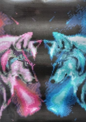 Postup: Horná strana plátna je potiahnutá lepidlom a prekrytá priehľadnou fóliou, ktorú postupne odstraňujte, ako budete aplikovať kamienky. Plátno obsahuje znaky odkazujúce na príslušný sáčok s kamienkami.