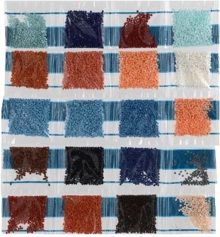 Postup pri maľovaní: Horná strana plátna je potiahnutá lepidlom a prekrytá priehľadnou fóliou, ktorú postupne sťahujete po častiach. Plátno obsahuje znaky, ktoré zodpovedajú vreckám s kamienkami. Do pera naberiete vosk a kamienky pomocou neho nanášate na plátno podľa legendy.