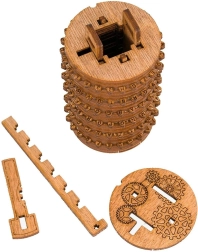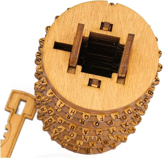 Drevený Cryptex je premyslený mechanický hlavolam zložený z 57 precíznych dielov z prírodného brezového dreva. Otočné prstence s písmenami tvoria kombinačný zámok, ktorý otvoríte zarovnaním správneho kódu. Vo vnútri sa ukrýva tajná priehradka (2 × 2 × 8 cm) ideálna na malé prekvapenie, odkaz či drobný darček.