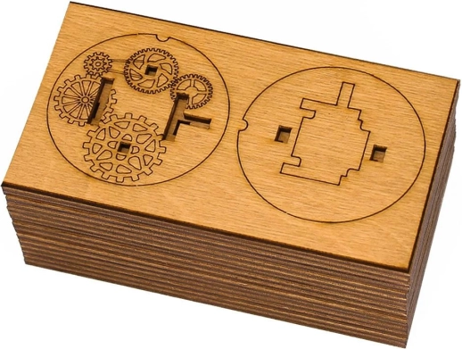 Vyrobené z prírodného brezového dreva s dekoratívnym gravírovaním a mechanikou inšpirovanou ozubenými kolesami. Odolné a estetické prevedenie.