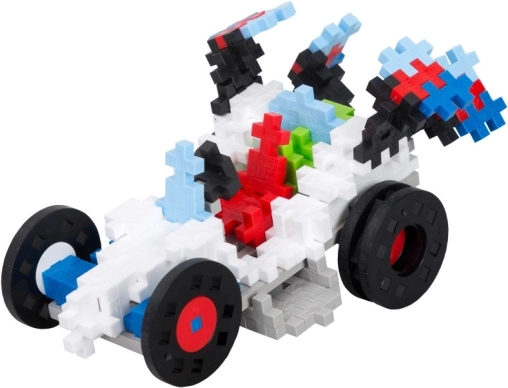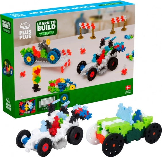Sada Plus-Plus Nauč sa stavať - Autá je ideálna pre rozvoj kreativity a jemnej motoriky u detí. S viac než 480 dielikmi, 2 podložkami a 6 kolieskami ponúka možnosť postaviť rôzne modely vozidiel ako autá, motorky a trojkolky.