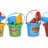 - Kompletný set – vedierko, hrabličky, lopatka a 3 formičky
