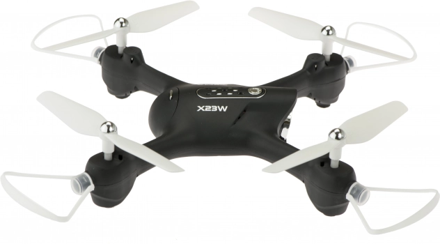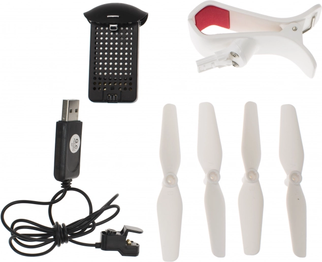 - Sada obsahuje: Dron Syma X23W, diaľkové ovládanie, batériu, USB kábel na nabíjanie, náhradné vrtule,