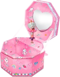 Kúzelná osemuhlá hudobná šperkovnica s motívom mačky baletky poteší každé dieťa. Po otvorení sa figúrka roztočí a zaznie klasická melódia. Šperkovnica má zrkadielko, priestor na drobnosti a funguje na mechanické naťahovanie bez batérií.