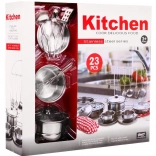 Tento 23-dielny kuchynský set pre deti ponúka skvelú príležitosť pre kreatívne hranie rolí. Sada obsahuje skutočné kovové riady a textilný kostým šéfkuchára, ktorý podporuje predstavivosť a rozvoj praktických zručností. Je vhodný pre deti od 3 rokov a zaručuje hodiny zábavy.