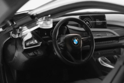 Stlačením tlačidla na ovládači sa otvoria ikonické dvere BMW i8 – pôsobivý efekt pri hraní aj vystavení modelu.