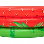 Dizajn jahody s výraznou červenou a zelenou farbou zaujme na prvý pohľad a premení každú záhradu na vodné ihrisko. Bazénik má objem približne 390 l, takže ponúka dostatok priestoru na hranie aj schladenie v horúcich dňoch. Vďaka pevnej konštrukcii z PVC a nafukovacím stenám je pohodlný, stabilný a príjemný aj pre menšie deti.