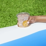 Nafukovací bazén BESTWAY s rozmermi 270 × 198 × 51 cm je navrhnutý na relax celej rodiny. Dva nafukovacie prstence zabezpečujú stabilitu, zatiaľ čo tvarované steny a dve integrované sedadlá poskytujú pohodlné oprenie chrbta. Praktické držiaky na nápoje udržia vaše osvieženie vždy po ruke a priehľadné okienko pridáva zábavný prvok pre deti.