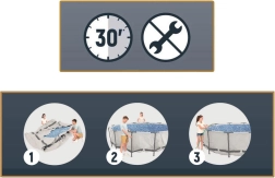 Robustný kruhový bazén do záhrady ponúkne až 9 150 litrov krištáľovo čistej vody na osvieženie v horúcich dňoch. Kovový rám odolný proti korózii s inteligentnými spojkami FrameLink System minimalizuje opotrebovanie v kovových spojoch. Liner z viacvrstvového materiálu Tritech je vystužený polyesterovým jadrom a dvoma silnými PVC vrstvami – je tak mimoriadne odolný proti pretrhnutiu, prerazeniu aj nárazom.