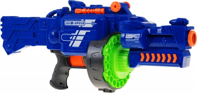 Doprajte deťom akčnú zábavu s blasterom BLAZE STORM – polautomatickým vystreľovačom s bubnovým zásobníkom na 20 šípok, elektrickým pohonom a rýchlosťou streľby až 3 šípky za sekundu. Ponúka dosah cca 10 m, bezpečné penové šípky a poistku spúšte. Vhodné pre deti od 6 rokov. Napájanie 5× AA (nie sú súčasťou).