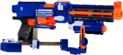 Dlhá hlaveň so stabilizačnými valčekmi pomáha spresniť let šípu, zatiaľ čo posuvné servisné okno uľahčí odstránenie zaseknutej munície. Nechýba prepínač ON/OFF na bezpečné blokovanie spúšte, predné nabíjanie a praktický laserový zameriavač na lepšie mierenie. V balení nájdete 20 penových nábojov, takže môžete hrať hneď.