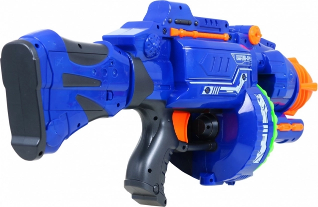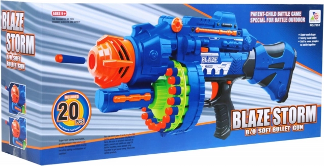 Blaster BLAZE STORM ponúka rýchlu a plynulú streľbu vďaka elektrickému poloautomatickému mechanizmu. Bubnový zásobník pojme až 20 šípok a v balení ich nájdete rovno 40 kusov, takže zábava môže trvať dlho. Vďaka ergonomickej rukoväti a odolnej plastovej konštrukcii je ideálny na outdoorové hry aj domáce súboje.