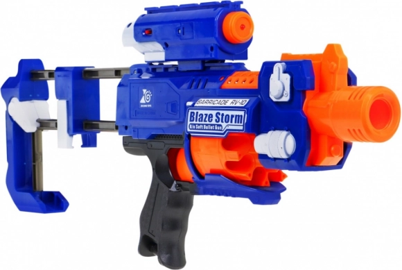 Blaze Storm je spoľahlivý penový blaster v modro-oranžovom prevedení, ktorý poteší každého malého nadšenca akčnej hry. Vďaka automatickému elektrickému pohonu na 3× AA batérie a prednému nabíjaniu si deti užijú plynulú a bezpečnú zábavu. Laserový zameriavač (2× LR44 v balení) pomáha presne mieriť, zatiaľ čo okno na uvoľnenie zaseknutej munície zabezpečuje bezproblémovú prevádzku.