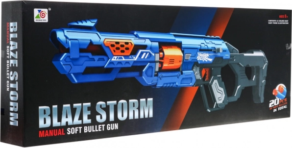 Zábavný a bezpečný blaster pre deti od 8 rokov BLAZE STORM ponúka manuálny mechanizmus bez batérií, rýchlu streľbu a ergonomické ovládanie. Stačí naplniť bubon penovými nábojmi, natiahnuť posuvným záverom a stlačiť spúšť. V balení je 20 mäkkých penových nábojov pre dlhé hodiny aktívnej hry.