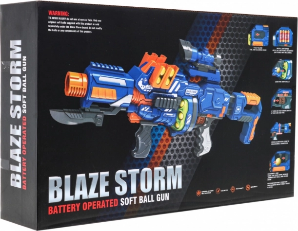 Zábavný a bezpečný penový blaster BLAZE STORM poteší staršie deti a tínedžerov od 14 rokov. Ponúka elektrický plne automatický režim streľby, bubnové nabíjanie a rýchlu kadenciu. Vďaka okienku na uvoľnenie zaseknutých guličiek a pohodlnému úchopu je hra plynulá a bez starostí. Balenie obsahuje 12 mäkkých penových guličiek.