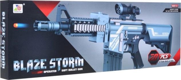 Zažite akčnú zábavu s elektrickou detskou puškou BLAZE STORM pre deti od 6 rokov. Plne automatický blaster so zásobníkom na 10 nábojov a balením 20 penových striel zabezpečí rýchlu a bezpečnú hru. Vďaka rýchlopalbe až 3 strely za sekundu, odnímateľnému taktickému zameriavaču a doletu okolo 10 m je ideálny na domáce aj vonkajšie bitky.