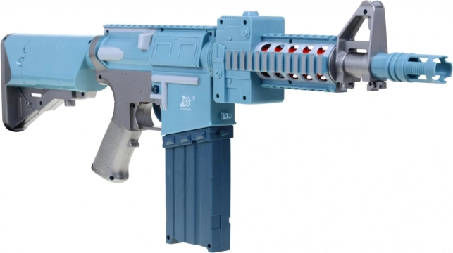 Elektrický kompresor poháňaný 5× AA batériami (nie sú súčasťou) zabezpečuje plynulú, plne automatickú streľbu – stačí stlačiť spúšť a každý stisk vystrelí jednu strelu. Spúšť možno pre bezpečie detí zablokovať prepínačom ON/OFF. Dlhá hlaveň s vodiacimi valčekmi stabilizuje výstrel pre presnejší zásah.
