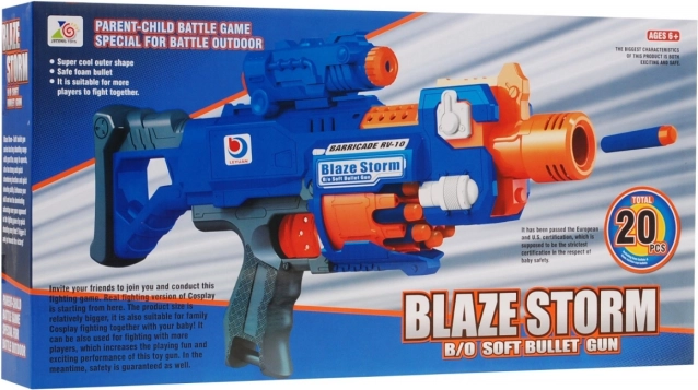 Užite si akčnú zábavu s elektrickou detskou blaster pištoľou BLAZE STORM, ktorá strieľa mäkké penové náboje. Ponúka plne automatické spúšťanie, rýchlopalbu až 3 výstrely za sekundu, dosah okolo 10 m a odnímateľnú pažbu pre premenu na kompaktnú pištoľ. Súčasťou je optický nástavec a 20 dlhých penových nábojov pre bezpečnú a zábavnú hru od 8 rokov.