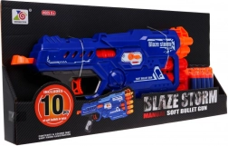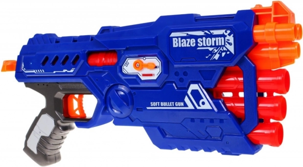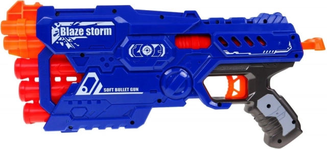 Blaster BLAZE STORM je skvelou voľbou pre bezpečnú a napínavú hru. Vďaka ručnému naťahovaciemu mechanizmu je ovládanie jednoduché a spoľahlivé – stačí nabiť šípky do 6 hlavní, natiahnuť a stlačiť spúšť. Prepínač režimov umožní zvoliť, či vystrelíte menšie modré alebo väčšie červené náboje.