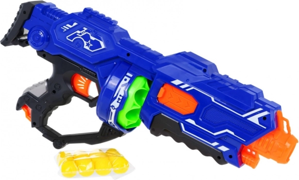 Blástr BLAZE STORM v modrej farbe je ideálnou voľbou pre bezpečnú a zábavnú streľbu penovými guľôčkami. Vďaka pružinovému systému je ovládanie jednoduché a spoľahlivé, zatiaľ čo ergonomická rukoväť zabezpečuje pohodlný úchop aj pri dlhšej hre. Stačí vložiť batérie, naplniť zásobník, zapnúť napájanie a môžete mieriť a strieľať.