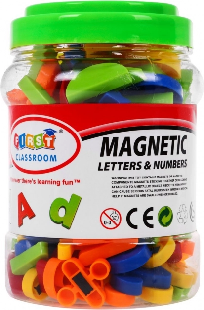 Objavte kreatívne učenie hrou. Táto bohatá súprava v praktickej plastovej dóze s uškom ponúka všetko na prvé zoznámenie s abecedou, číslami a jednoduchými počtovými úlohami. Vďaka silným magnetom držia dieliky na väčšine kovových povrchov a skvele sa hodia k magnetickým tabuliam.