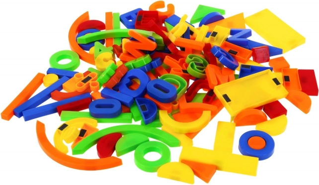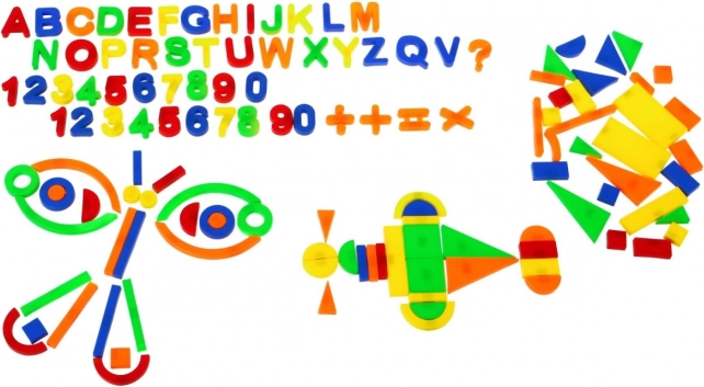 Kompletný mix písmen, číslic, tvarov a symbolov ponúka nekonečno kombinácií na skladanie slov, počítanie aj kreatívne tvorenie.