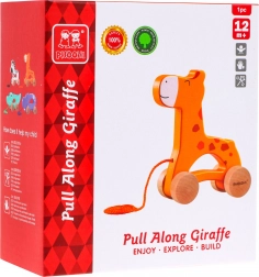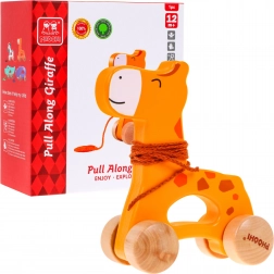 Drevené kolieska a jednoduchá šnúra umožňujú deťom ľahko ťahať žirafu po rôznych povrchoch.