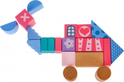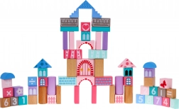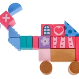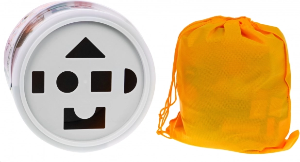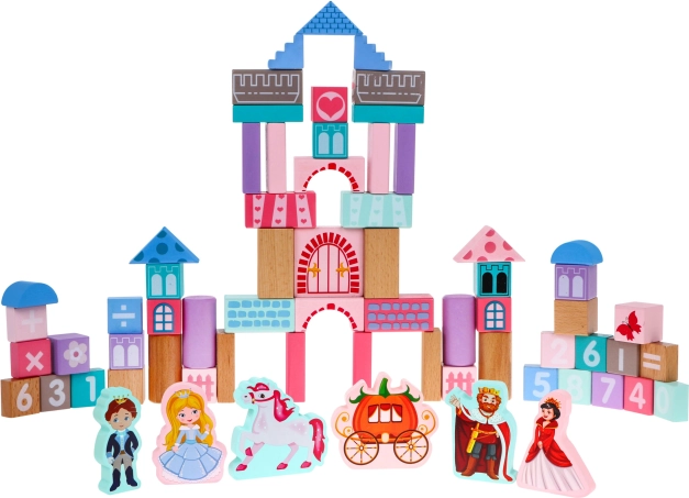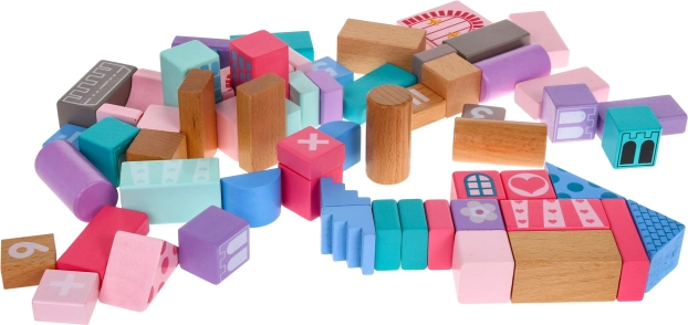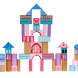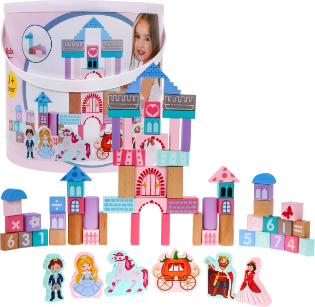 Drevený set stavebníc, navrhnutý s dôrazom na bezpečnosť, obsahuje 67 rôznorodých prvkov, ktoré prinášajú zábavu a zároveň vzdelávanie. Deti sa môžu prostredníctvom hry učiť tvary, geometrické figúry a rozvíjať svoje logické myslenie. Kocky sú balené vo vedre s viečkom vybaveným sortérom, do ktorého možno vkladať kocky zodpovedajúcich tvarov.
