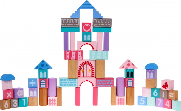 Sada obsahuje farebné kocky, ktoré možno použiť na vytvorenie rozprávkového hradu, podporujúceho detskú kreativitu.