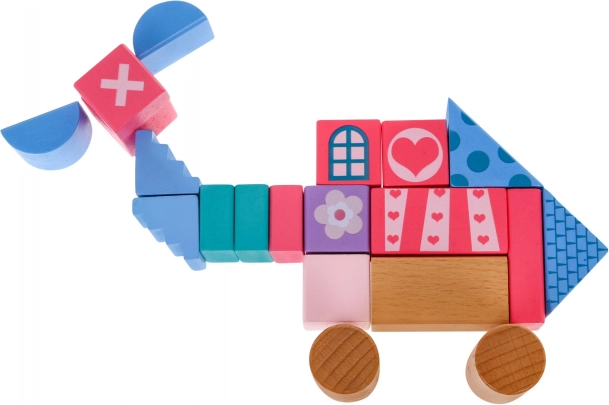 Rôzne tvary ako valce, obdĺžniky a trojuholníky pomáhajú deťom rozvíjať priestorové chápanie a základy matematiky.
