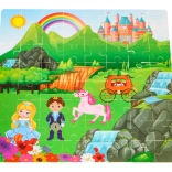 Súčasťou sady sú drevené hračky v tvare rozprávkových postáv, ktoré rozširujú možnosti imaginatívnej hry.
