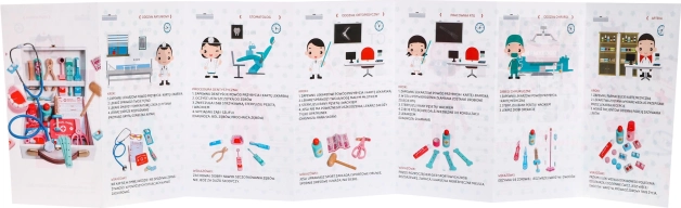 Okrem hračkových nástrojov súprava obsahuje aj knihy, ktoré deti učia o ľudskom tele a správaní pri návšteve lekára, podporujúc vzdelávaciu a interaktívnu hru.