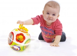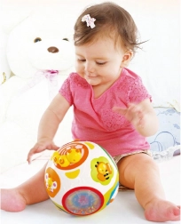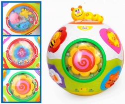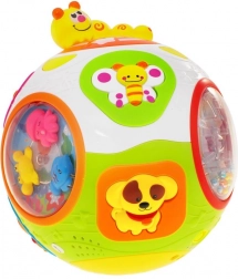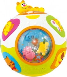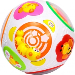 Guľa má množstvo tlačidiel, ktoré vydávajú zvieracie zvuky a blikajúce svetlá, čím podporuje zmyslový rozvoj detí.