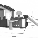 Domček ponúka šmykľavku, basketbalový kôš, záhradku so stolom a dvomi stoličkami, čo poskytuje deťom široké možnosti hry.
